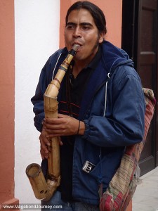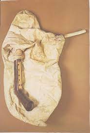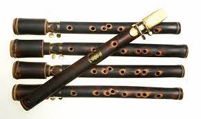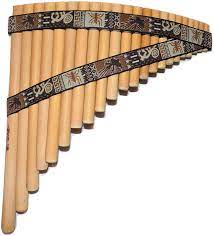 A series of thin wooden tubes of various lengths joined together side by side. The result is what looks like a triangle with the shortest tube on one side and the longest at the other. The musician blows through the top, shifting to different tubes to produce different notes.