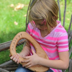 Lyres have a U-shaped body with a connecting piece along the top of the U and several plucked strings running parallel to the sides. These range from very simple to extremely ornate and can have any number of strings, although a standard lyre is wooden with 7 strings.