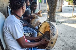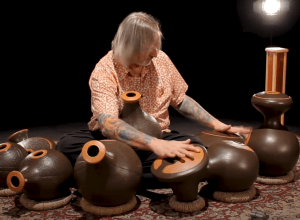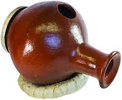 Essentially a clay water jug with an extra hole in it. The jug has a small amount of water sitting in the bottom, and is played by tapping or dragging one’s fingers along the outside.