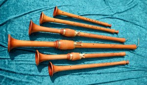 Songhorns were simple recorders made of wood. Their sound was mellower than that of longhorns and fared better on lower ranges.