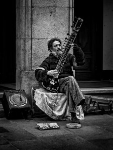 Dulcimers come in many shapes and sizes, but consist of a hollow wooden slab with strings running along the body, much like a guitar or violin. These strings however, are hit with small hammers to produce notes instead of being plucked. A musician would likely carry a uniquely shaped dulcimer to garner interest.