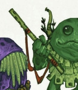 Very similar to a flute, this instrument is produced by the grung and creates different pitches when air is blown through it. Grung also tie a length of cord to the stick which they use to swing it over their heads, creating a unique sound as the air flows through it which can be used to communicate a variety of different messages.